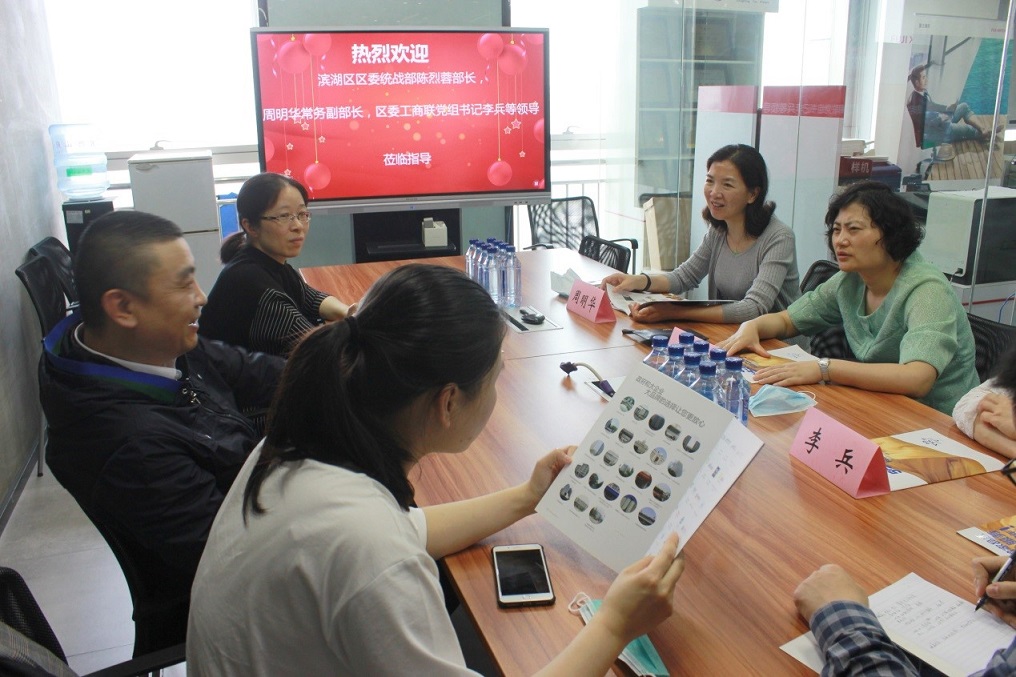 5月8日下午,濱湖區區委常委、統戰部部長陳烈蓉,濱湖區區委統戰部常務副部長周明華、濱湖區工商聯黨組書記李兵及民革濱湖區主委唐劍芳走訪慰問了江蘇科嘉信息科技有限公司。